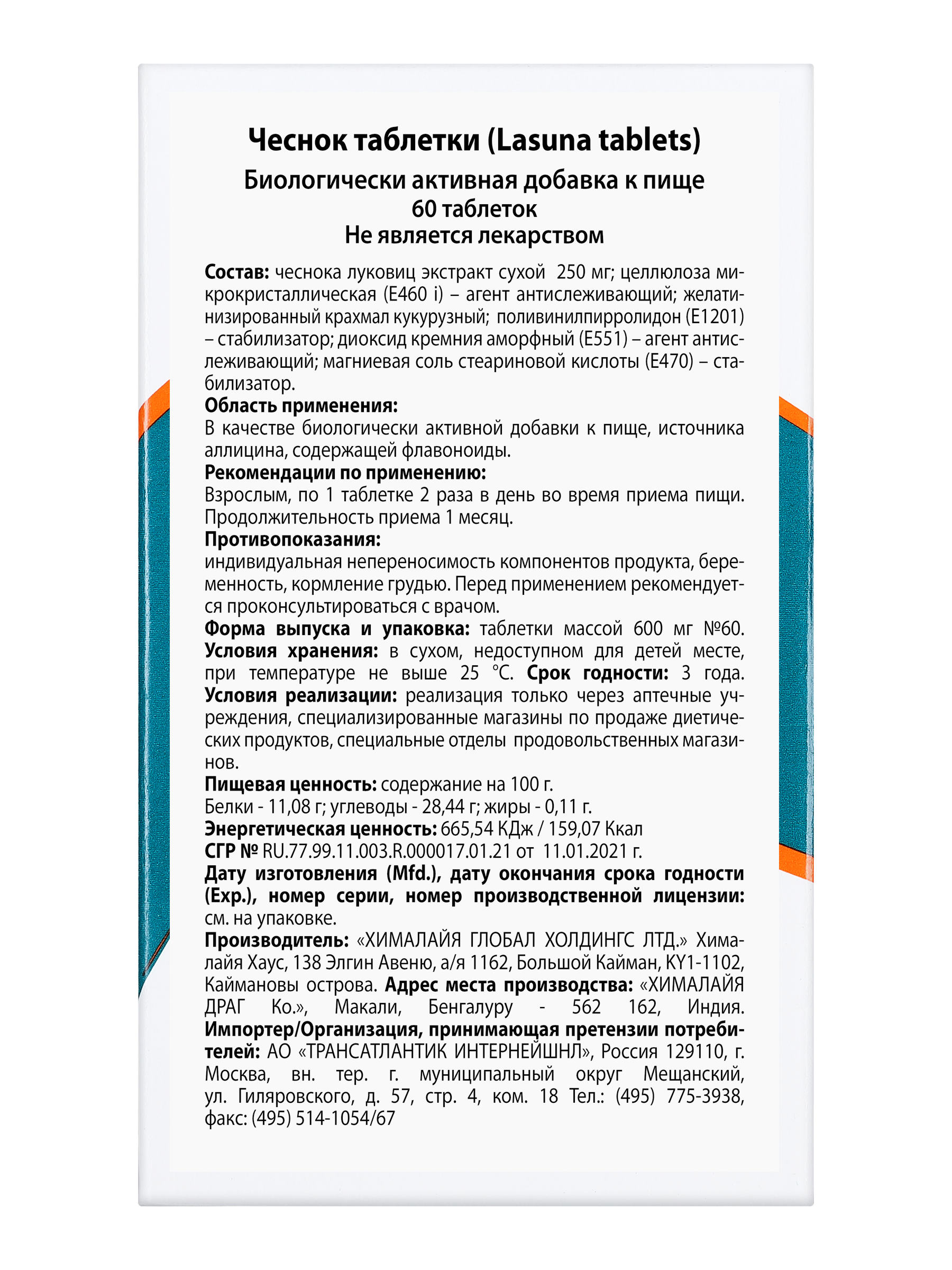Препарат Чеснок таблетки от Himalaya Wellness содержит экстракт (250 мг) луковиц чеснока, что предполагает более высокую активность в поддержании здоровья сердечно-сосудистой системы. Экстракт луковиц чеснока получают методом CSF(critical super fluid), что гарантирует отсутствие растворителя в таблетке и они безопасны.